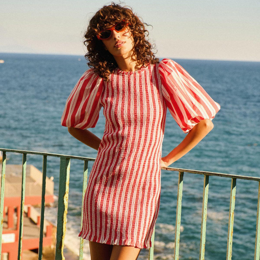 50% RABATTDeanna™- Mini smocket rutete kjole