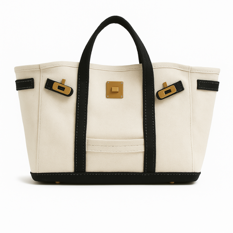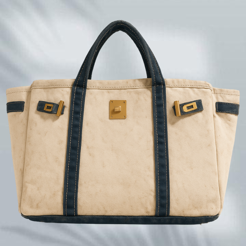 Denne håndlagde vesken kombinerer funksjonalitet og eleganse i ett. Med robust lerret, stålbeslag og klassisk design er den en pålitelig følgesvenn både til hverdags og mer formelle anledninger.